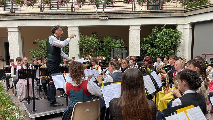 Musik überwindet Grenzen: Bewiesen haben dies vom Freitag, 26., bis Sonntag, 28. Juli, die 60 Nachwuchsmusikerinnen und -musiker des Euregio-Jugendblasorchesters. Für ihre Konzerte mit den Dirigenten Hannes Schrötter (Südtirol), Andreas Waldner (Tirol) und Franco Puliafito (Trentino) ernteten die 16- bis 30-jährigen Musiktalente aus der Euregio Tirol-Südtirol-Trentino viel Applaus.