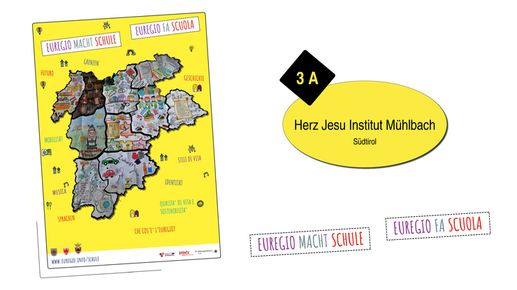 Die Schulen können ein Poster anfordern, das von der Euregio zur Verfügung gestellt wird und in Puzzleteile unterteilt ist. Die SchülerInnen können unmittelbar damit beginnen, es mit ihren eigenen kreativen Ideen zu gestalten und zu vervollständigen. Modul für Modul entsteht somit ein Werk, das das Gelernte und ihr "Bild" von der Euregio darstellt. Das fertige Plakat kann anschließend beim Abschlusswettbewerb eingereicht und präsentiert werden: Es sind insgesamt 5.000 Euro zu gewinnen, welche auf die besten Arbeiten aufgeteilt werden.