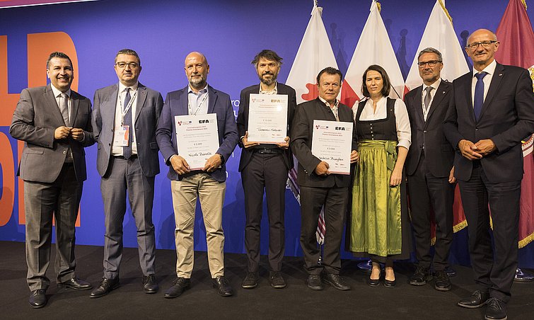 Presidente della giuria: Marcus Hofer (Standortagentur Tirol) e i 9 finalisti © EFA/ Huber