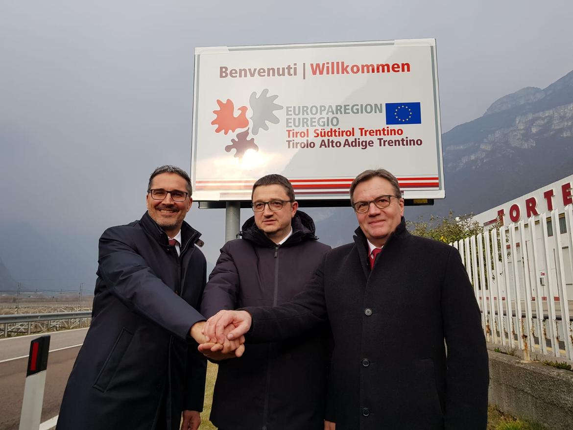 Nella riunione della Giunta a maggio 2019, i presidenti dell'Euregio hanno deciso di installare dei cartelli ai confini dell'Euregio per dare più visibilità all'Euroregione. I cartelli, 67 in totale, nel frattempo sono stati collocati presso tutti i confini con le vicine regioni italiane Lombardia e Veneto, così come ai confini con la Germania e con i Länder austriaci di Salisburgo, Vorarlberg e Carinzia. I cartelli di benvenuto sono bilingui (italiano e tedesco) e in alcuni casi trilingui (italiano, tedesco e ladino).