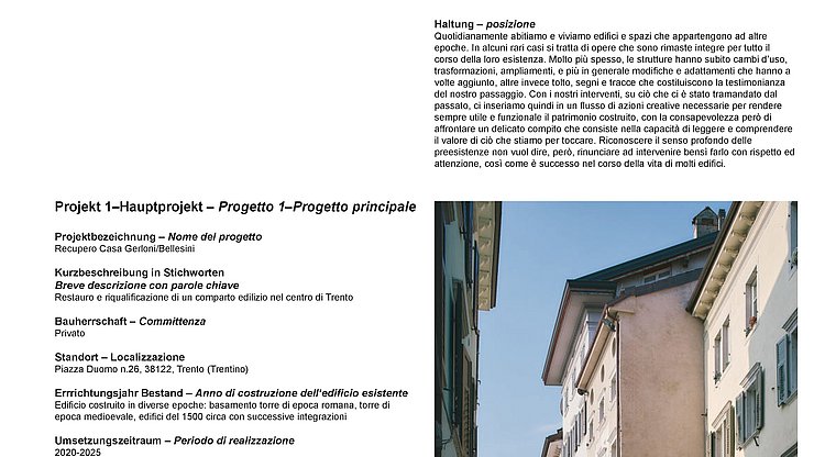 L’ambiente costruito plasma l’ambiente e gli spazi in cui viviamo, influenza la nostra quotidianità e costituisce il quadro del vivere sociale. In particolare, nella Euregio Tirolo-Alto Adige-Trentino, il patrimonio architettonico rappresenta un elemento fondamentale dell’identità culturale. Occorre preservare le tradizioni, salvaguardare l’artigianato e promuovere una trasformazione contemporanea, affrontando tematiche quali la conservazione e il riuso, l’integrazione armoniosa nel paesaggio e nell’ambiente, i fattori climatici, la sostenibilità, l’impiego di materiali e risorse regionali, la creazione di valore a livello locale e le questioni sociali.