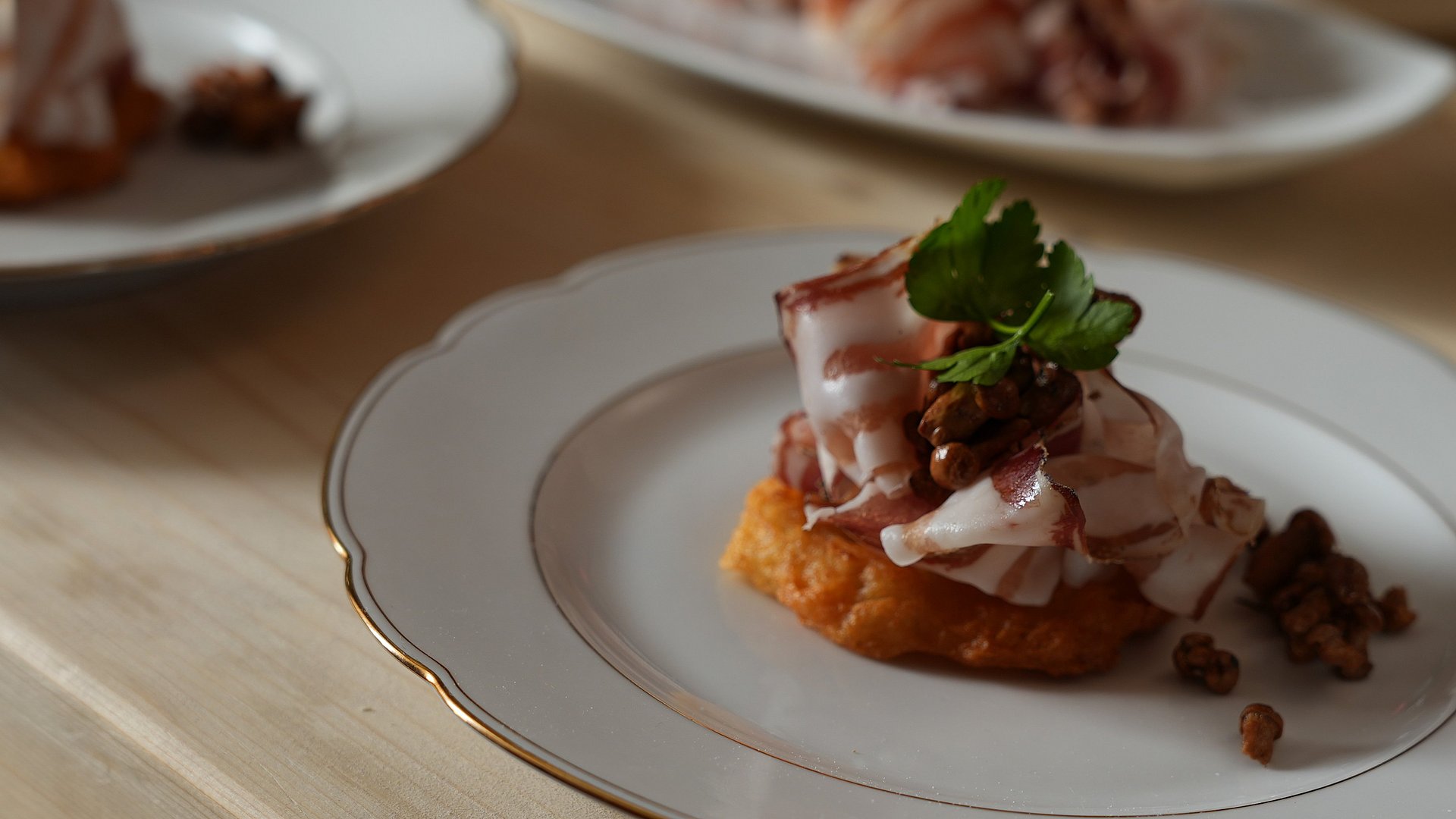 La cucina di Giulia non è fatta solo di passione, ma anche di storia. Alla Locanda Alpina, un’osteria con radici che risalgono al 1853, porta avanti insieme alla sua famiglia l’eredità di quattro generazioni. Per lei, lavorare nell’attività di famiglia, al di là delle sfide, è più di tutto una fortuna: è un luogo di libertà e di legami. La sua cucina fonde prodotti locali con un tocco personale: «Deve custodire la tradizione, ma non essere una semplice copia: voglio che nasca qualcosa di originale, qualcosa di nostro», racconta.