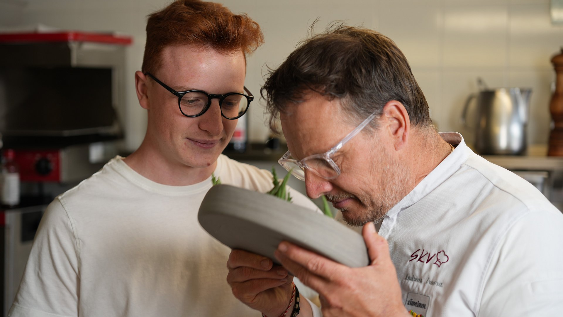 Un piatto che riecheggia le nostre montagne: nel suo ristorante “Stüa dla Lâ” in Val Badia, Andrea Irsara porta in tavola un frammento della sua terra. La sua sella di cervo alla brace con erbe selvatiche, pino cembro e purea di sedano unisce la genuinità alpina alla raffinatezza culinaria. Il tutto accompagnato da cavolo rosso, salsa alle erbe e ginepro e marmellata di mirtilli rossi. Gli ingredienti provengono dai boschi e dagli orti della zona, molti dei quali raccolti a mano, spesso dalla zia di Andrea, la sua personale “strega delle erbe”.