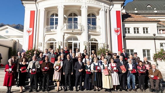 Il capitano del Tirolo Mattle e il presidente della Provincia di Bolzano Kompatscher hanno insignito con la Medaglia d'onore del Land Tirol otto…